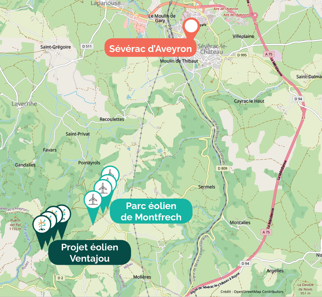 Co-développeur du projet de Ventajou la commune de Sévérac d’Aveyron a souhaité s’impliquer fortement au travers de sa participation en tant que futur actionnaire de la société de projet et dans le pilotage d’une concertation ambitieuse.